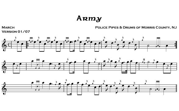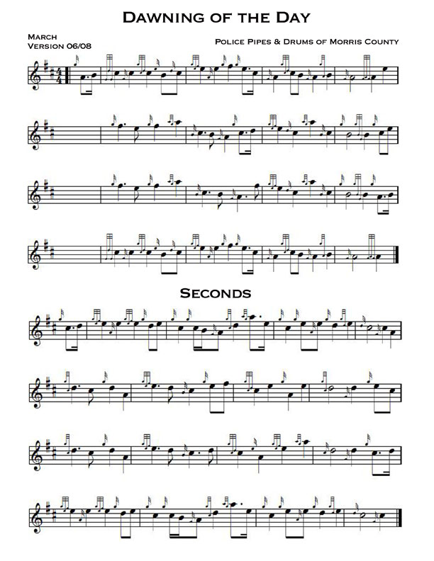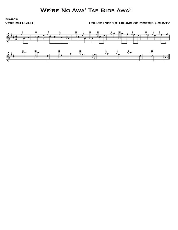 The Police Pipes & Drums of Morris County are constantly learning and refining our repertoire so that we can provide the appropriate music at every event. The following is a list of the music we are currently playing. If you are looking for a specific tune to match a special occasion that you don't see listed below, please contact our Band Manager to discuss the matter further.